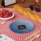 Elegantes Pinselblau mit einfachem Goldmonogramm Pappteller