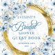 Elegantes Powder Blue Gold Boho Blumenstrauß Braut Gästebuch