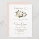 Elegante Einladungen zum Hochzeitsessen mit Probe in zauberhafter Blumengestalt in Aquarellfarbe mit weißen und rot rosa Botanikalen und Grünpflanzen. Personalisieren Sie den Text "The night before they say I Do" mit den Namen der Braut und des Bräutigams in der modernen Schrift, und fügen Sie alle Details für das besondere Ereignis ein.