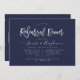 Elegante und moderne silberne handgeschriebene Drehbuch Probe Dinner Invitations und Navy Blue, eine Heimat. Copyright © 2016-2019 Bombino Designs.