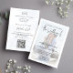Dieses Design verfügt über eine elegante QR-Code-UAWG-Hochzeitseinladung, mit einer einfachen blauen Blumen-Blume-Vorlage, mit einem klassischen Online-Gästeschema-Foto, einer klassischen Kalligrafieschrift, einer minimalistischen Typografie-Boho-Suite, elegant modern und minimalistisch, mit einer scannbaren QR-Code-Website, digitalem Download-Grün, Foto Vellum-Transparent-Effekt, eine elegante Schreibery