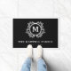 Mit Monogramm Begrüßungsmatte in Schwarz und Weiß mit einem wunderschönen, mit Blättern verzierten Monogramm über Ihrem Familiennamen und dem Jahr, in dem Ihre Familie gegründet wurde.