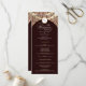 Diese Hochzeitskarte zeigt einen fett roten Hintergrund mit verzierten goldenen Schnörkeln und schafft ein reichhaltiges und luxuriöses Design. Oben ragt ein dekoratives Wappen die Initialen ein, während das Zentrum die Namen der Paare und die Details des Hochzeitsservice in einem raffinierten Layout hervorhebt. Die dramatische Paarung von Rot und Gold vermittelt Eleganz, Großzügigkeit und Feiern und macht diese Programmkarte zu einer idealen Wahl für feierliche Hochzeiten und festliche Anlässe.