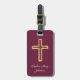 Personalisierter Eleganter Religious Cross Red Burgundy Script Gepäcktag.