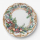 Dieses elegante Tellerdesign verfügt über eine dekorative falsche Goldrandgestaltung mit winterlichen Blattwerkakzenten.