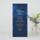 Dieses elegante romantische Hochzeitsmenü bietet einen dramatischen dunkelblauen Universum mit Sternen. Sie können Ihre Menüdetails hinzufügen, indem Sie auf den Link Anpassen klicken. Das ist Teil einer wunderschönen Hochzeitssuite mit passenden Tischnummern, Platzkarten und vielen anderen Artikeln.