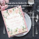Eleganter weißer Hintergrund mit rosa und elfenbeinfarbenen Rose, floraler Aquarellrahmen und fließender Vegetation von Blätter & Weinreben rund um die extravagant koordinierende rosa Drehbuch Braudusche Einladung auf einem Blatt Papier für diejenigen, die ein Budget. Das ist eine schöne Einladung. Perfektes Brautparty für jede Hochzeitszeit.