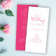 Diese Service-Karte für den Hochzeitstag verfügt über einen eleganten und schönen Script-Schriftart, der mit modernen Texten in heißen rosa Farbtönen ergänzt wird. Dieses Stück ist für Sie bereit, um mit den Details Ihrer Zeremonie anpassen. Als Teil einer ständig wachsenden Kollektion stöbern Sie in der eleganten, rosafarbenen Hochzeitskollektion für Aquarellfarben mit passenden Gegenständen.