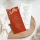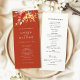 Das elegante und schlichte Rostorange-Hochzeit im Herbst-Programm mit einem lebhaften Blumenstrauß in Aquarelltönen, Blätter und Beeren in Sonnenuntergangstönen mit tiefen Orangen, Pfirsichen und Pommes Frites schafft ein boho rustikales Ambiente, das Ihre stilvolle Herbsthochzeit perfekt ergänzt. Die warme Farbenpalette der Aquarellblumen ist perfekt mit elegantem Serifentext auf einem erdigen Rostorange-Hintergrund gepaart und schafft so einen auffälligen und raffinierten Look. Einfach mit allen Details Ihrer Veranstaltung und Hochzeitsfeier hier im Zazzle-Editor zu gestalten - Sie sind nur wenige Schritte entfernt von Ihrem besonderen Tag der Hochzeit im Herbst mit einem raffinierten Boho-Charme!