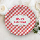 Elegantes rotes Gingham-Muster-personalisierter Geburtstags-Papier-Teller.