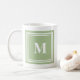 Elegantes Sage Green Colored Block Frame Monogramm Kaffeetasse