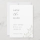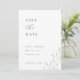 Individuell gestaltete Hochzeitskarte Save the Date mit modernem, einfachem Design mit schläfengrünem Blattwerk.