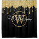 Chic Schwarz und Gold Monogramm mit goldenen Glitzer Tropfen Duschvorhang. Sie können den Namen, das Monogramm personalisieren und den Schriftart und die Farben anpassen, um Ihr eigenes einzigartiges Design zu erstellen. Entwickelt von Thisisnotme©