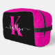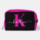 Elegantes Schwarz-Hot-Pink-Script-Monogramm Waschbeutel