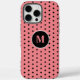 Elegant Black & Pink Polka Dot Initial iPhone 16 Pro Max Fall. Personalisieren Sie dieses Handy mit Ihrem Monogramm. Passen Sie es an, um die Bilder zu entfernen und Ihr Design zu erstellen. Fügen Sie Ihre Familie, Ihr Jubiläum, Ihre Hochzeit oder jede Gelegenheit zu diesem individuellen Rahmen-Design hinzu.