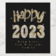 Elegantes Schwarz-Weiß-Gold-Happy New Year 2023 Weinetikett