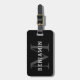 Ein eingradiges Gepäckanhänger mit weißem Namen, erster Buchstabe des zweiten Namens in Grau auf einem schwarzen Hintergrund. Personalisieren Sie Ihre Kontaktdaten in trendiger Hauptstadt.