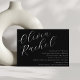 Diese zeitgenössische Fledermausmitzvah-Einladung zeichnet sich durch eine minimalistische horizontale Komposition und eine schöne, weiße Schriftzeichen auf schwarzem Hintergrund aus.