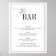 Schwarzer Rahmen, elegantes Drehbuch Schwarz-Weiß Hochzeit, Bar-Menü. Text und Farben können bearbeitet werden.