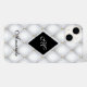 Ein elegantes und elegantes Design mit luxuriösem weißem, getuftetem Hintergrund, Golddivets und einem schwarzen Diamanten mit Monogramm und Namen in eleganter Schriftzeichen. Machen Sie eine Aussage mit diesem minimalistisch schwarz-weiß iPhone Gehäuse.