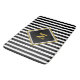 Sie können das große Imitat (nicht Folie) Monogramm personalisieren, das sich in der Mitte eines Diamantgrenzes befindet. Der Hintergrund weist vertikale schwarz-weiße Streifen auf.