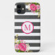 Elegantes Schwarz-weißes Streifen Monogramm Case-Mate iPhone Hülle