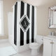 Eleganter Schwarz-weißer vertikale Streifen-Monogramm-Duschvorhang kann eine noble Touch einem Badezimmer hinzufügen. Weißer Hintergrund mit mutigen schwarzen vertikalen Streifen und dem Diamantmonogramm zentriert auf Duschvorhang. KLICKEN SIE PERSONIFIZIEREN SCHABLONEN-WAHL UND EINTRAGEN IHRE MONOGRAMM-INITIALE