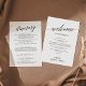 Diese eleganten, schwarzen Hochzeitstitel und Karten für die Tour sind perfekt für eine einfache Hochzeit. Das neutrale Design besticht durch eine minimalistische Karte, die mit romantischer und skurriler Typografie dekoriert ist. Auf der Vorderseite der Karte befindet sich ein Begrüßungsschreiben, auf der Rückseite der Karte befindet sich der Hochzeitstag. Diese Noten sind ideal für Hochzeiten in Urlaubsort und Begrüßungstaschen für Hotelgäste.