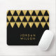 Elegantes schwarzes Mauspad mit schicken Imitaten, goldenes Dreieck, das Sie mit Ihrem Namen personalisieren können. Personalisieren Sie es, indem Sie den Platzhalter-Text ersetzen. Für weitere Optionen, wie zum Beispiel den Schriftart und seine Größe ändern, klicken Sie auf die Schaltfläche "Anpassen". *Bitte beachten Sie, dass das Zazzle-Wasserzeichen, das in der Zoomvorschau angezeigt wird, NICHT auf dem gedruckten Endprodukt erscheint. © Rosewood and Citrus