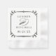 Elegante, individuelle Hochzeitsnapkins verfügen über einen dekorativen Scrollrahmen mit einem stilvollen Monogramm-Design, das mit den Braut- und Bräutigamen und dem Hochzeitstag personalisiert werden kann.