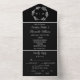 Schwarz-Weiß, elegant, rustikal, modern gefaltete Ehe, Hochzeit alles in einer Einladung. Das dreifache, budgetäre Set. Sie können es mit Ihren eigenen Daten personalisiert.