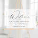 Einfaches und modernes, nicht gestopftes Hochzeitszeichen mit "Welcome" in einem modernen, schwarzen Kalligrafieschrift mit Imitaten mattiertem Acrylhintergrund. Passen Sie das Acryl-Hochzeitszeichen ohne Stecker an, indem Sie eine benutzerdefinierte Nachricht und Ihre Namen hinzufügen. Das Schwarz-Weiß-Zeremonie-Zeichen wurde entworfen, um sich mit unserer Hochzeitskollektion "Moderne Elegance" abzustimmen und ist in anderen Farben erhältlich.