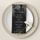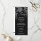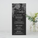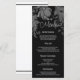 Eine einfache elegante schwarze und weiße Blumen-Spitzen-Hochzeitsmenü-Einladung. Diese minimalistische monochrome Sommerblumen-Hochzeitseinladung ist perfekt für jedes anspruchsvolle Mädchen. Dieses Design ist ideal für ein trendiges und stilvolles Hochzeitsereignis. Passen Sie dieses Design mit Ihrer Nachricht und persönlichen Informationen an. Alle Designs werden gedruckt.