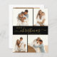 Modernes, Minimalistisches, elegantes "Frohe Weihnachten" Script 4 Foto Collage Weihnachts-Weihnachtskarten in Schwarz und Gold. Diese festliche, klare minimalistische, vier (4) Foto Familienurlaub-Karte verfügt über eine hübsche Grid-Foto-Collage und Sprichwort "Frohe Weihnachten"! Das "Christmas" Grußtext-Skript ist in einem handgeschriebenen Wirblen Swash-Schwanz-Schriftart-Typ geschrieben. Auf der Rückseite ein Foto und Ihre Nachricht. Hübsche Grußkarte für Ihre Familie und Freunde in der Winterferienzeit.