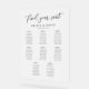 Klassische Kalligrafie Script Hochzeitssitzplan mit einem lichtdurchlässigen weißen Hintergrund. Suchen Sie Ihr Sitzzeichen. Personalisiert Einfache Minimalistische Sitzkarte für 80 Gäste (8 Tische). Klicken Sie einfach auf den Link, um den Text anzupassen, der unter dem Bereich für die Textpersonalisierung rechts angezeigt wird, und wählen Sie Ihren eigenen Farbhintergrund aus. Dieses Schild Poster-Template macht es einfach und schnell, atemberaubende Ergänzungen Ihrer Hochzeitsdekoration zu schaffen. Die Zeichen können vergrößert werden, es gibt viele Größen zur Auswahl, sowie Optionen für die individuelle Gestaltung und Anpassung.