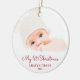 Elegantes Script Baby's First Christmas Foto Keramik Ornament