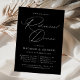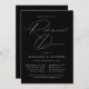 Unsere modernen Einladungen zum Abendessen in der Probe beinhalten den Begriff "Probe Dinner", der in einem eleganten, weißen Kalligrafieschrift mit schwarzem Hintergrund (oder einer beliebigen Farbe) angezeigt wird. Personalisieren Sie die Einladungen in Schwarz-Weiß-Probe mit Ihren Namen, dem Datum, der Probe und den Details zum Abendessen. Das elegante Restaurant lädt zu lässigen und formellen Proben ein.