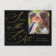 Elegantes Script Black & Gold Foto Save the Date Postkarte