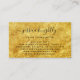 Elegante Script Kalligraphie Swash Black Gold Texture Business Card. Elegante, stilvolle berufliche Visitenkarte mit extravagantem Kalligraphieskriptnamen mit schwarzen Swashes auf goldenem Texturhintergrund). ÄNDERUNGEN: Ändern Sie den Stil, die Farbe, die Größe und die Position des Schriftartes in EDIT. HILFE: Für Hilfe bei der Designänderung, der Übertragung des Designs auf ein anderes Produkt oder wenn Sie die Dinge koordinieren möchten, wenden Sie sich bitte an den Designer, BEVOR Sie die Bestellung über die Registerkarte Zazzle Chat MESSAGE oder per E-Mail makeitaboutyoustore@gmail.com.