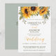 Elegantes Script Sonnenblumen Einladung Hochzeit. Genießen Sie den Charme der Einfachheit mit unserer minimalistischen, eleganten Sonnenblumenhochzeit. Das Design mit einem sanften, hellgrünen Hintergrund auf der Rückseite des Einladens mit Monogramm-Buchstaben ist mit drei anmutigen Sonnenblumen auf der Vorderseite geschmückt und symbolisiert das Glück und die Wärme. Der Einladungstext ist elegant Set in einem reichen Braun, das das natürliche Thema perfekt ergänzt. Ideal für eine rustikale Hochzeit oder eine Gartenhochzeit, bietet diese Einladung ein perfektes Gleichgewicht zwischen schlichter Eleganz und natürlicher Schönheit.