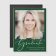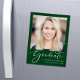 Feiern Sie Ihren Absolventen mit dieser Magnetkarte für den grünen Abschluss, die "Graduate" in einem eleganten, weißen Drehbuch und ihrem Foto und ihrem Namen, ihrer Schule und ihrem Klassenjahr in schlichter moderner weißer Typografie enthält.