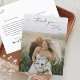 Ein elegantes Script Foto Wedding Dankeschön Postcard mit einem einfachen, modernen Layout mit minimalem Foto und Typografie auf der Vorderseite. Der Rücken hat eine persönliche Nachricht von dem Paar. Klicken Sie auf die Schaltfläche Personalisieren, um dieses Design mit Ihren Fotos und Details anzupassen.