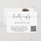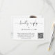 Elegante Hochzeitskarte RSVP, die "freundlich antworten" in einem schicken Kalligraphieskript enthält. Geben Sie Ihre Hochzeitswebsite-Adresse ein, um einen QR-Code zu erstellen, den Ihre Gäste online zur UAWG scannen können. Auf der Rückseite befindet sich Ihr Foto, das mit Vornamen und Hochzeitstermin überlagert wird.