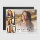 Elegante Magnetkarte mit dem Foto des Absolventen, überlagert mit einem Streifen von drei kleineren quadratischen Fotos und "Graduate" in einem modernen Drehbuch und ihrem Namen und Klassenjahr in einfacher Typografie.