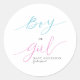 Elegantes Script-Gender-Party für Jungen oder Mädc Runder Aufkleber