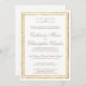 Klassische Hochzeitseinladung in Gold und Weiß mit einer modernen Touch, die das elegante Drehbuch der Paarnamen und die goldene Grenze des Imitats enthält.