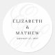 Elegantes Script Ivory White Monogram Wedding Classic Round Sticker
