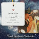 Modernes Hochzeitsschmuck mit Ihren individuellen Namen in einem eleganten Wirblen Drehkalligrafiedesign neben einem gedruckten Goldenherz der Rose und dem Datum Ihrer Feier. Auf der Rückseite ist Platz für Ihr Lieblings-Foto der Nuptials. Dies ist die minimalistische schwarz-weiße Version. Tolle Sake-Geschenke für Neuvermählte!