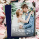 Elegantes Script Modern Navy Blue Wedding Foto Dankeskarte