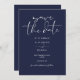 Elegantes Script Navy Blue QR Code Hochzeit Save The Date